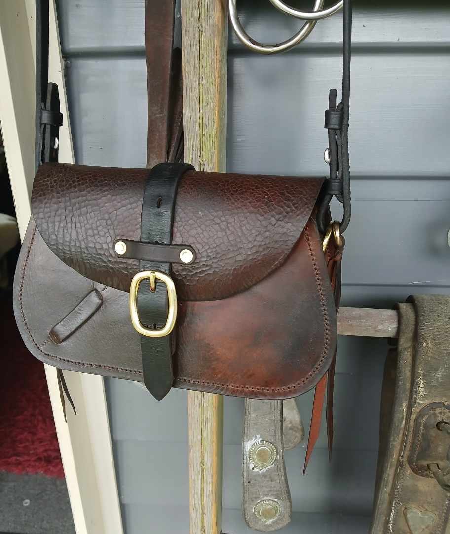 One-of-a-kind Handbag made from Vintage Repurposed Saddle Leather perfectly worn and aged.